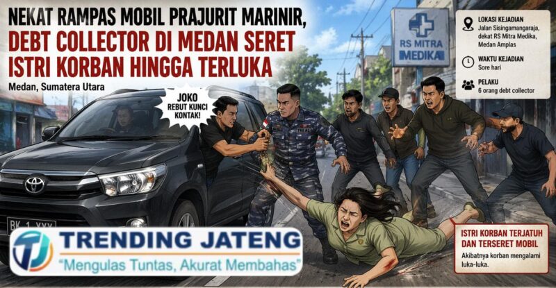 MEDAN – Aksi nekat dilakukan oleh sekelompok *debt collector* di Kota Medan, Sumatera Utara. Sebanyak enam orang pelaku melakukan pencegatan dan perampasan mobil milik seorang prajurit TNI Angkatan Laut berinisial Serda M, saat melintas di Jalan Sisingamangaraja, dekat RS Mitra Medika, Medan Amplas.