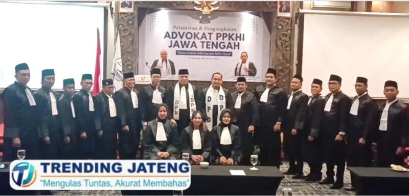 SEMARANG – Perkumpulan Pengacara dan Konsultan Hukum Indonesia (PPKHI) Jawa Tengah kembali memperkuat jajaran penegak hukum dengan melantik 18 advokat baru periode 2026. Prosesi pelantikan yang berlangsung khidmat ini digelar di Hotel Noormans, Kota Semarang, Selasa malam (6/1/2026).