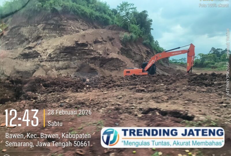 KAB SEMARANG – Aktivitas pengerukan tanah skala besar di wilayah Tegalrejo, Kecamatan Bawen, Kabupaten Semarang, mulai memicu keresahan warga. Berdasarkan pantauan lapangan pada Sabtu (28/2/2026), kegiatan yang diduga merupakan praktik Galian C ilegal tersebut beroperasi sangat dekat dengan permukiman penduduk tanpa transparansi izin yang jelas.